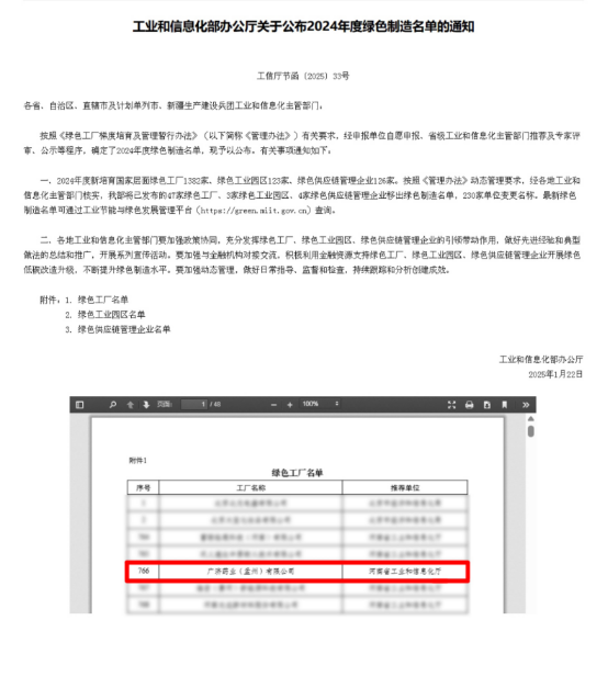 广济药业旗下企业获评国家级“绿色工厂”。近日,国家工业和信息化部公布2024年度国家级绿色制造名单,广济药业(孟州)有限公司凭借卓越的绿色生产体系和环境管理能力,获评国家级“绿色工厂”。这是继广济药业2022年度入选后再次斩获这一国家级殊荣,标志着公司在绿色智造和可持续发展领域的标杆地位进一步巩固。